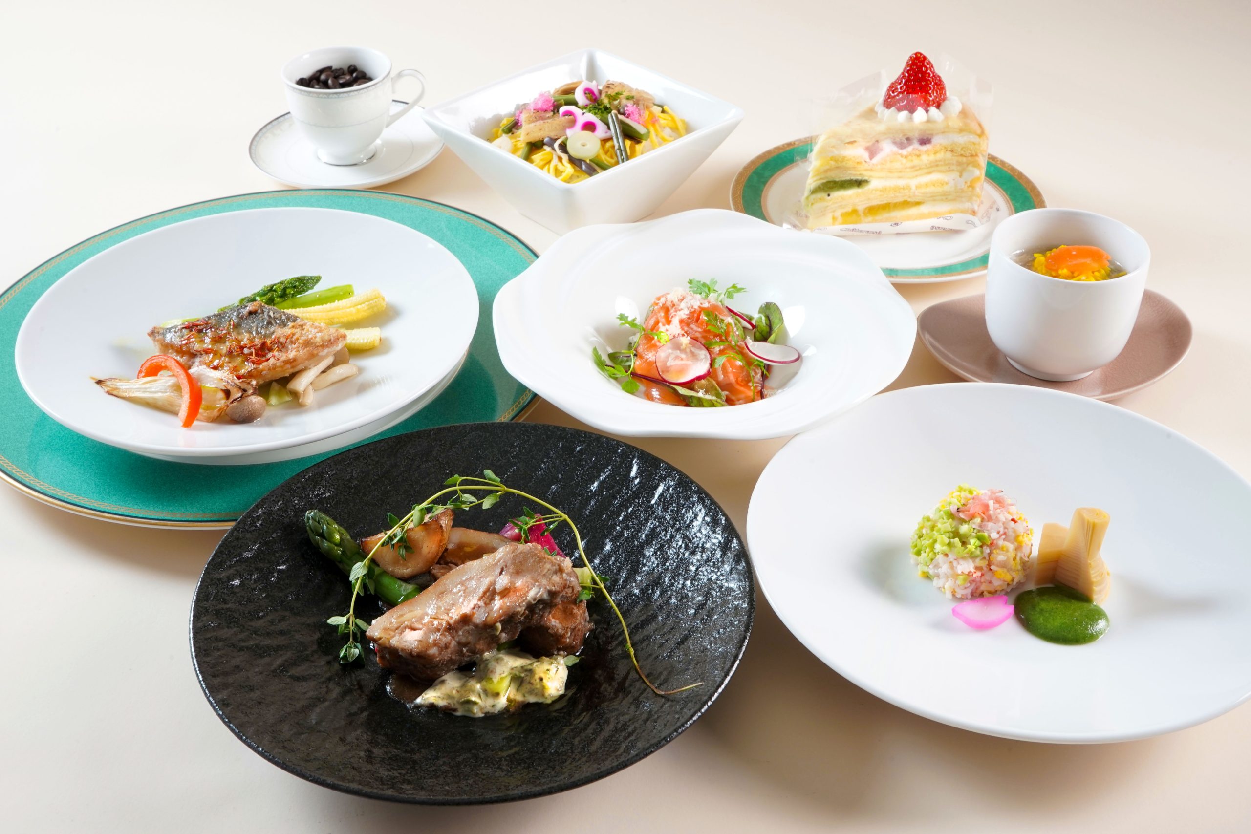 春の食材を使用した和洋中のお料理に、